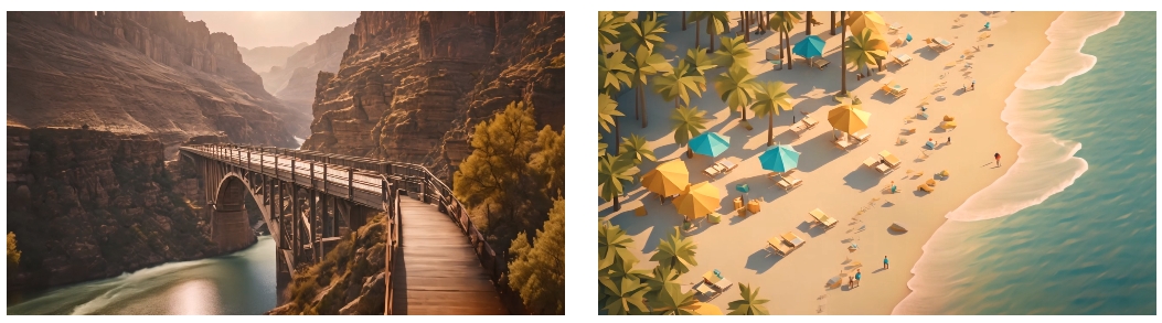 스틸이미지에 생명력을 불어넣는 Gen-2의 기능은 아직 완전하진 않습니다. 생성할 수 있는 영상의 길이는 4초에 불과하고 등장인물이나 기물이 쉽게 붕괴할 뿐만 아니라 화질도 입력 이미지에 비해 떨어집니다. 그러나 때때로 Gen-2의 잠재력을 확인할 때면 굉장히 놀랍습니다. 물의 흐름을 인지해 물살이 느껴지게 하고, 머리카락이 날리는 모양으로 바람의 세기를 가늠하게 합니다. 카메라 워킹 기능도 들어있어 줌인, 줌아웃은 물론 패닝, 틸팅까지 가능합니다. 아직 사람의 표정을 움직이는 것에는 한계가 있지만 눈 깜빡임이나 작은 미소는 만들어낼 수 있습니다.