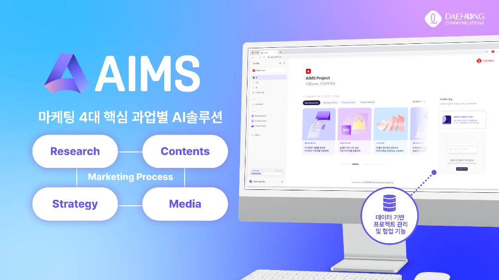 대홍기획 홍성현 대표이사는 “AIMS는 마케터와 AI의 협업으로 시너지를 발휘하고 기존의 한계를 뛰어넘는 솔루션을 제시하는 시스템”이라며 “업무 효율을 극대화해 마케터들이 더욱 창의적이고 전략적인 업무에 집중해 성과를 내는 ‘미래 마케팅 업무의 표준’을 만들어 나가겠다”고 전했다.