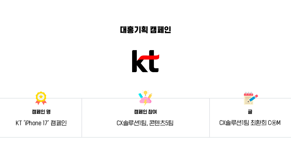 매년 9월, 애플은 새로운 아이폰을 세상에 선보입니다. 그리고 이 시기, 통신 3사는 동시에 마케팅 경쟁의 신호탄을 쏘아 올리며 보다 차별화된 광고를 만들기 위해 고민이 깊어집니다. KT 역시 매년 같은 질문을 던집니다.